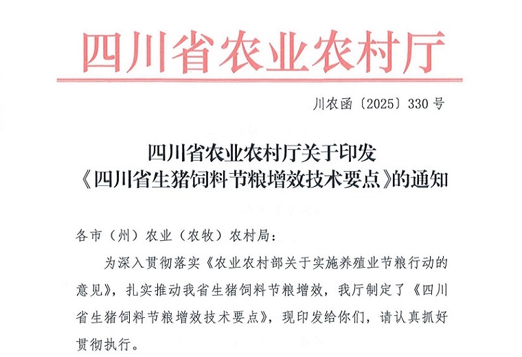 • 四川省農業農村廳印發《四川省生豬飼料節糧增效技術要點》 查看詳情>