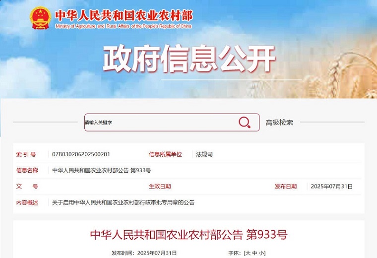 • 農業農村部即將啟用新飼料、新飼料添加劑證書核發等事項行政審批專用章 查看詳情>